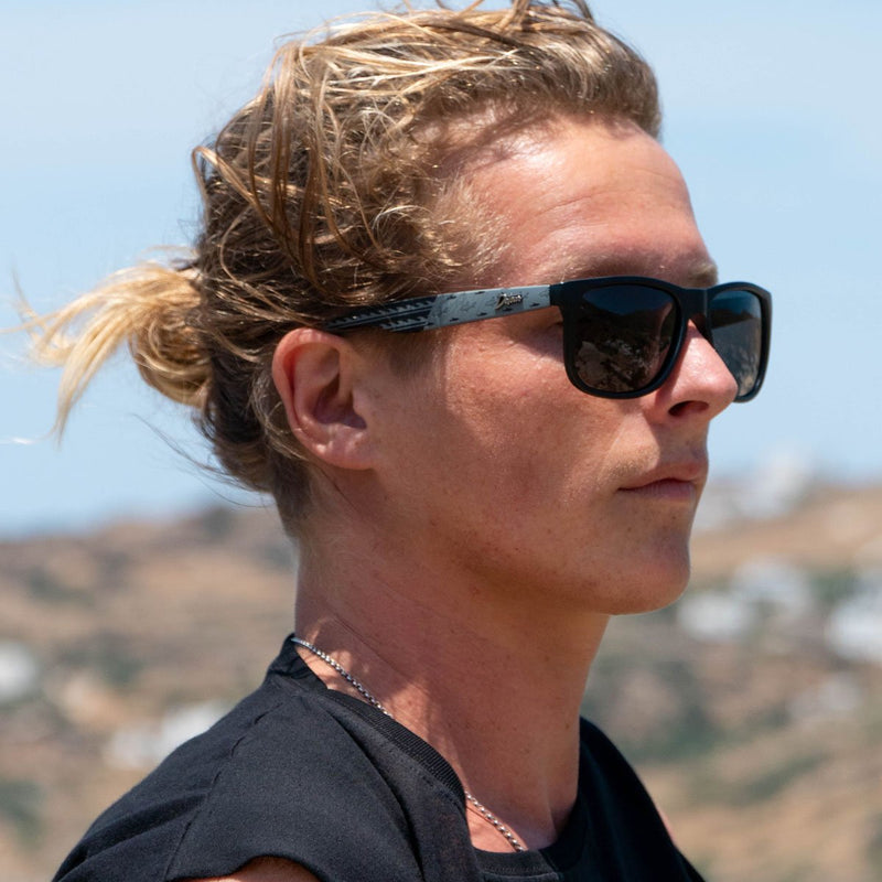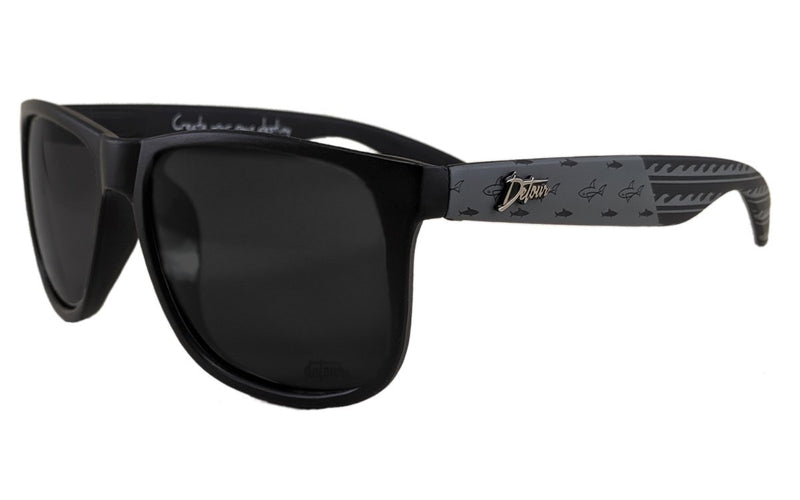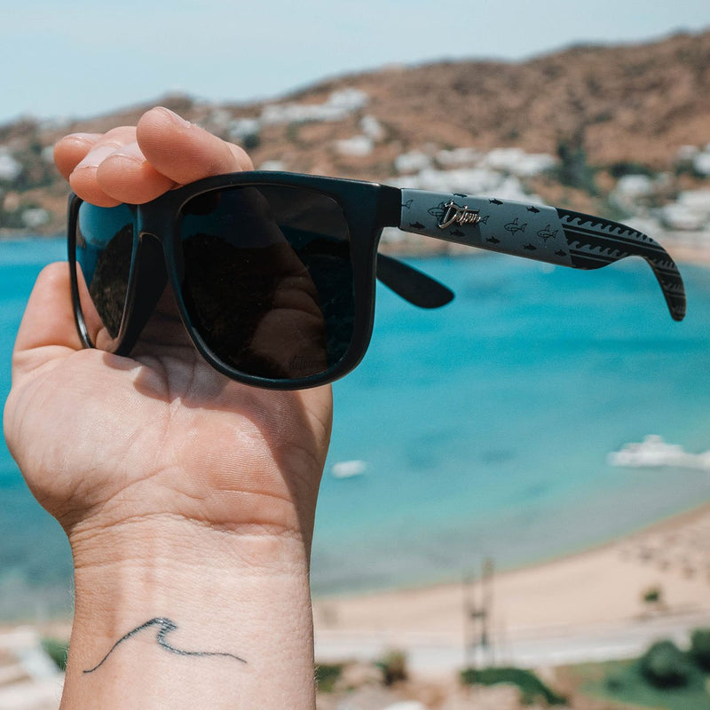 Eminence - Sharks & Stripes Blackout - Jet Black Lens Polarized is for anyone who wants a patriotic vibe that stays clean and subtle. The matte black frame features a gray Sharks & Stripes print, giving you an easy, everyday look that still stands out when the light hits.