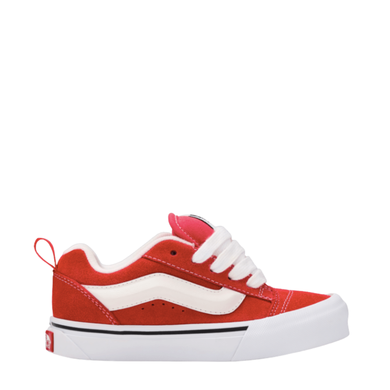 The Kids Knu Skool is a modern interpretation of a classic 90s style, defined by its puffed up tongue and 3D-molded Sidestripe, and tied off with oversized, chunky laces. With its in-your-face profile and dramatic two-toned style details, the Kids Knu Skool plays off of the original Old Skool while blending an icon of the past with today’s trends.